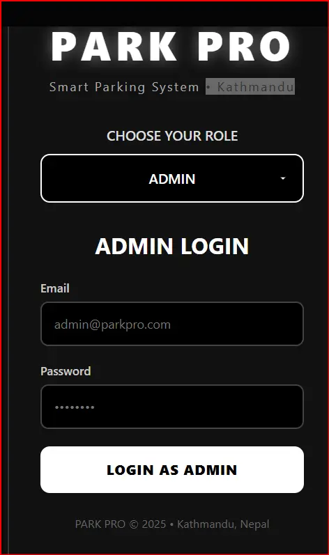 Perfect minimalist design for your Kathmandu parking system. Copy, save as parkpro.html, done!